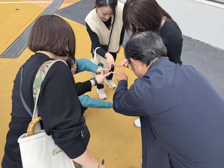 いよいよフィールドに出発です。屋外の公園や街中などに設置されたチェックポイントを巡り、写真撮影やQRコード読み取りなどで得点を獲得していきます。 このフェーズでは、「計画通りに進めるチーム」と「現場で修正を重ねるチーム」に分かれます。 予想外の事態(通行止め、疲労、地図の読み間違いなど)が起こる中で、どのように意思決定を行うかがポイントです。 まさに、“現場対応力”と“柔軟な判断”のトレーニングとなります。 講師は、各チームの行動をチェックしながら、コミュニケーションの質やリーダーの振る舞いなどを観察・記録します。【STEP4】ゴール・結果発表(約30分)