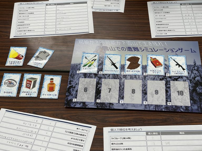 正解照合フェーズ:最後に、専門家が示す「生存確率を高める公式順位」と比較し、誤差(点差)を算出する。 このシンプルな構成の中に、意思決定に関わる多くの要素が凝縮されています。限られた時間と情報の中で、メンバーがどう協力し、誰の意見を重視し、どのように合意に至るか。そのすべてが“チームの意思決定力”を映し出す鏡となるのです。